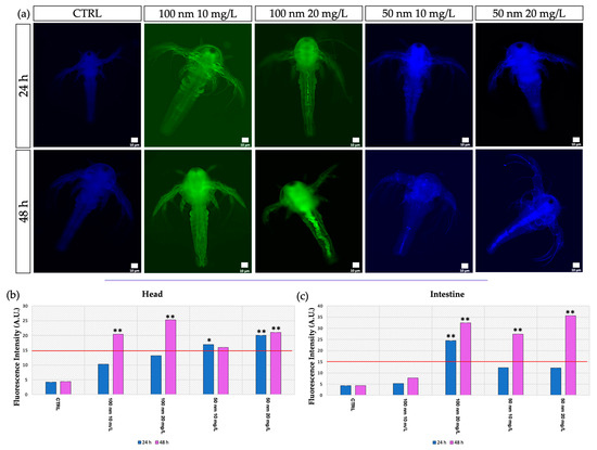 - Albano, M.; Panarello, G.; Di Paola, D.; Capparucci, F.; Crupi, R.; Gugliandolo, E.; Spanò, N.; Capillo, G.; Savoca, S. The influence of polystyrene microspheres abundance on development and feeding behavior of Artemia salina (Linnaeus, 1758). Appl. Sci. 2021, 11, 3352. [Google Scholar] [CrossRef]