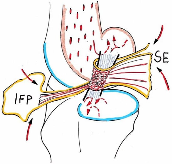 A fair number of studies focused on degenerative changes within the ligaments. The following morphologic/anatomical factors have been identified as risk factors for mechanic and/or metabolic damage to the CCL []: tibial plateau angle and tibial trust [], the above-stated poor intrinsic blood supply [,,] (Figure 1), and narrow femoral intercondylar notches, among others, have been cited [,,].