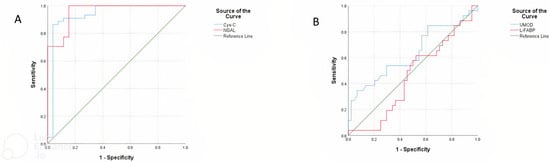 - Elnady, H.G.; Abdalmoneam, N.; Shady, M.M.A.; Hassanain, A.I.; Ibraheim, R.A.; Raouf, H.A. Urinary liver-type fatty acid-binding protein for early detection of acute kidney injury in neonatal sepsis. Med. Res. J. 2014, 13, 21–26. [Google Scholar] [CrossRef]