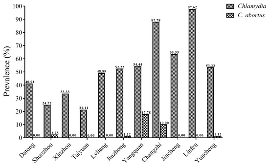 Seroprevalence of Chlamydia and C. abortus in Cattle in 11 Cities of Shanxi Province.