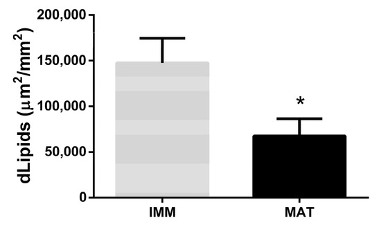 Difference in lipid density between livers of immature (n = 22) and mature (n = 28) females. Asterisk (*) indicates a significant statistical difference for p-value < 0.05.
