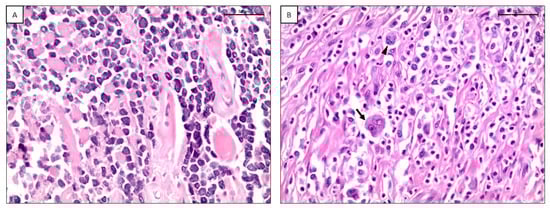 Nowadays, the analysis of TME is at the forefront of oncology since tumor infiltrating cells or immune cells were reported to influence the development and the progression of several tumoral diseases. Hence, for this reason, we focused our attention on eosinophils. Eosinophils are immunomodulatory, cytotoxic cells representing 1–3% of leukocytes that have been reported in various organs associated with the pathogenesis and prognosis of various pathologies, such as allergic phenomena, asthma, vasculitis, gastrointestinal disorders, and parasitosis [55]. The term TATE was suggested at first by Lowe et al. in 1981 [4] to indicate the presence of eosinophils in tumor stroma recruited under the influence of chemicals or other immune cells, in the absence of any ulceration or necrosis [56,57]. TATE has been documented in several neoplasms in human medicine, such as oral squamous cell carcinoma (SCC) [58], solid tumors, bladder cancer [18], larynx SCC [59], esophageal SCC [60], colorectal cancer [61], cervical carcinoma [62], gastric adenocarcinoma [63], nasopharyngeal carcinoma [64], Hodgkin lymphoma [65], and penile cancer [13]. The presence of eosinophils in MCT is due to mast-cell-released eosinophil chemoattractant factors (such as histamine, stem cell factor, and interleukin 5) [66]; however, there are no studies testing the potential prognostic power of the degree of eosinophils infiltrates in MCTs.