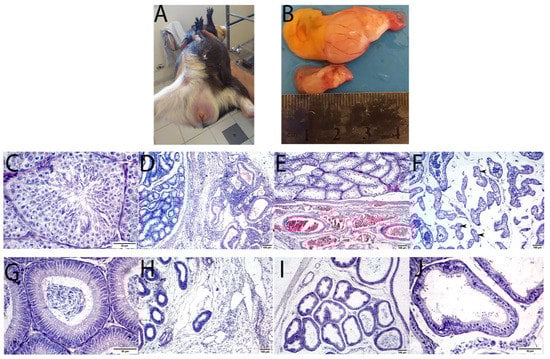 - Umer, M.; Jesse, F.F.A.; Saleh, W.M.M.; Chung, E.L.T.; Haron, A.W.; Saharee, A.A.; Lila, M.A.M.; Ariff, A.B.; Mohammad, K.; Sharif, A. Histopathological changes of reproductive organs of goats immunized with Corynebacterium pseudotuberculosis killed vaccine. Microb. Pathog. 2020, 149, 104539. [Google Scholar] [CrossRef] [PubMed]