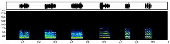 - Kanwal, J.S.; Ohlemiller, S.M.K.; Suga, N. Analysis of acoustic elements and syntax in communication sounds emitted by mustached bats. J. Acoust. Soc. Am. 1994, 96, 1229–1245. [Google Scholar] [CrossRef] [PubMed]