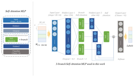 SA-MLP (#3 module). As illustrated in Figure 3, SA-MLP is a multi-branch shallow fully connected neural network. There are only two hidden layers and three branch self-attention layers. A shallower network means that less training data and computational resources are required. Meanwhile, wider networks lead to better performance. Combining the less computationally intensive nature of self-attention and the ability to capture context, the multiple branches of the self-attention layer are then designed into the MLP in order to better learn the complex mapping relationships in the shallow network. Considering that there are three fields (see Table 1) in the expert knowledge texts, the number of branches is set to three in this work. Furthermore, to avoid overfitting, the residual structure and dropout layers are also embedded. An additional self-attention layer is used in the dropout layer and residual structure to reduce computation. To summarize, SA-MLP benefits from a light structure, requires little training data, and is computationally inexpensive. As the #2 module (pre-trained CLIP) is used without training, KI-CLIP also requires minimal resources.