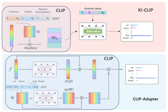 KI-CLIP vs. CLIP. CLIP is a foundation deep learning model for multimodal fusion learning which is trained on a large amount of text and image data. CLIP shows the power in few-shot or even zero-shot learning [31] and it has been used successfully in medical [88], speech recognition [89], and other areas, but not in wildlife monitoring. In this work, we first introduce CLIP into intelligent wildlife as part of KI-CLIP. In this way, KI-CLIP also exploits the capabilities of multimodal fusion and few-shot/zero-shot learning. In contrast to the direct application of CLIP in various domains, KI-CLIP does not require the use of a certain number of samples to fine-tune CLIP. We train a lightweight neural network (i.e., SA-MLP) instead to help the CLIP in KI-CLIP work better by using fewer resources than fine-tuning. In addition, KI-CLIP combines human expert knowledge with the extensive image–text association knowledge of the pre-trained CLIP model. In short, KI-CLIP is a powerful large-scale deep learning model that is more applicable than CLIP to specific scenarios of endangered and rare wildlife monitoring.