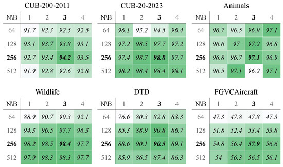 Analysis of unknown learning. Unknown species tasks require KI-CLIP to be retrained. Therefore, the performance in this area is affected by the few-shot capability of KI-CLIP. Consequently, the ability of the model to detect uncertain targets is crucial to validate the success of the incremental learning mechanism according to Equation (5). Hence, we evaluated the classification probability values of the softmax classifier when classifying unfamiliar species and verified its incremental learning mechanism’s ability to deceive KI-CLIP. Similar to the unseen task, we used the CUB-20-2023, Animal, and Wildlife datasets from the animal category, as shown in Figure 1, for testing.