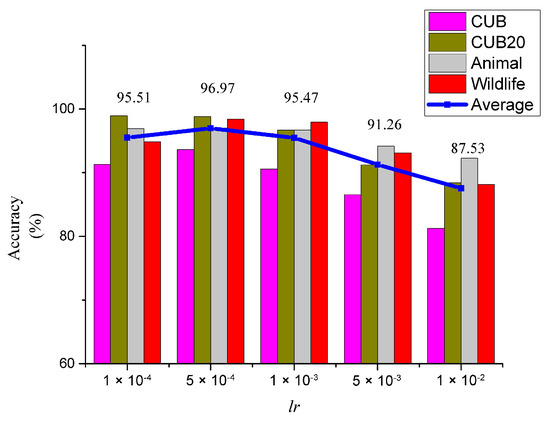 It is worthy to note that the evaluation metric used in computer science for few-shot learning or zero-shot learning is the accuracy [31,39]. In most cases, the precision, recall, or F1 score, used to measure the performance of algorithms because of the unbalanced problem, are not required for few-shot or zero-shot learning because there are fewer training samples in each category [51]. In this work, we also used the accuracy as the evaluation metric.