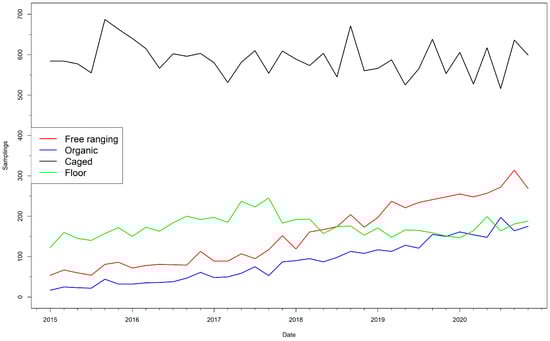 - Gole, V.C.; Woodhouse, R.; Caraguel, C.; Moyle, T.; Rault, J.L.; Sexton, M.; Chousalkar, K. Dynamics of Salmonella Shedding and Welfare of Hens in Free-Range Egg Production Systems. Appl. Environ. Microbiol. 2017, 83, e03313-16. [Google Scholar] [CrossRef]