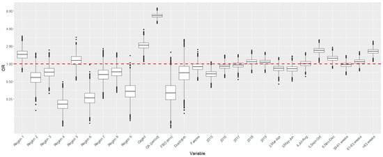 | Level (n) | Variable | Category | Median β, γ, δ | Rhat | Median OR (95% PPI) |