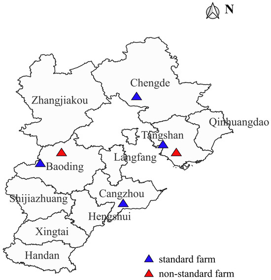 The distribution of broiler farms in Hebei Province, China.