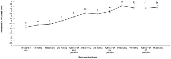 - Pascual, J.J.; Castella, F.; Cervera, C.; Blas, E.; Fernández-Carmona, J. The use of ultrasound measurement of perirenal fat thickness to estimate changes in body condition of young female rabbits. Animal Sci. 2000, 70, 435–442. [Google Scholar] [CrossRef]