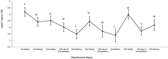 - Kirat, D.; Hamid, N.E.A.; Mohamed, W.E.; Hamada, M.; Shalaby, S.I. Leptin gene expression in rabbits during pregnancy and fetal life. Int. J. Biol. 2015, 7, 113. [Google Scholar] [CrossRef][Green Version]