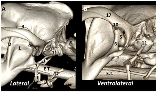 - Hermanson, J.W.; De la Hunta, A.; Evans, H.E. Millers and Evans’ Anatomy of the Dog, 5th ed.; Elsevier: St. Louis, MO, USA, 2020; pp. 86–124. [Google Scholar]