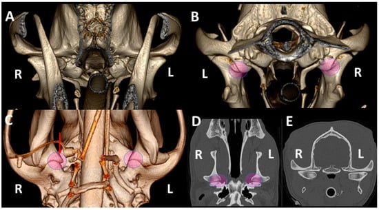 APA StyleNovales, M., Lucena, R., Hernández, E. M., Ginel, P. J., Fernández, J. M., & Blanco, B. (2023). Three-Dimensional Volume Rendering in Computed Tomography for Evaluation of the Temporomandibular Joint in Dogs. Animals, 13(20), 3231. https://doi.org/10.3390/ani13203231