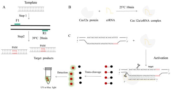 - Zhang, A.; Sun, B.; Zhang, J.; Cheng, C.; Zhou, J.; Niu, F.; Luo, Z.; Yu, L.; Yu, C.; Dai, Y.; et al. CRISPR/Cas12a Coupled with Recombinase Polymerase Amplification for Sensitive and Specific Detection of Aphelenchoides besseyi. Front. Bioeng. Biotechnol. 2022, 10, 912959. [Google Scholar] [CrossRef]