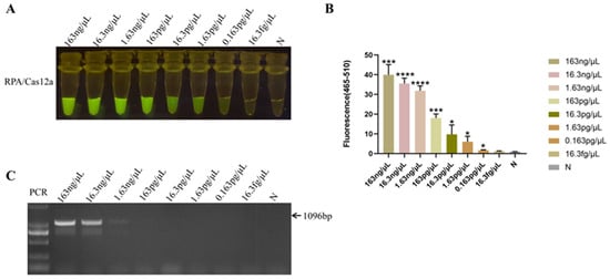 3.5. Results of the Application of the RPA-CRISPR/Cas12a Assay System