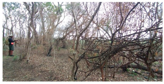 In terms of subsequent conflict and how these fires affected primates, the most alarming example is the one experienced at the Estación Biológica de Corrientes (EBCO). During August and October 2020, this multi-decade study site suffered two consecutive intentional fires (to obtain new pasture for cattle) that burnt at least half of the area where researchers had monitored black-and-gold howlers for almost 40 years [68]. The field site lost half of the surveyed groups (an estimated 10 groups—80 individuals—disappeared during the fires or the subsequent months) (Figure 2). The remaining, surviving groups are still located and overpopulating the forest patches that the fires did not reach. Ongoing research is focused on assessing the potential multi-year/multi-generation effects of fires on the survival of the population.