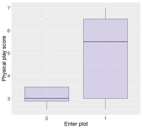 Likelihood of entering the plot according to playfulness in the physical environment (higher score = higher playfulness) in the Thai sample.