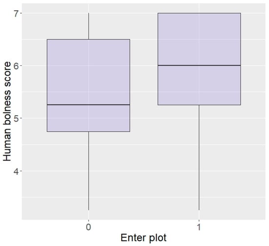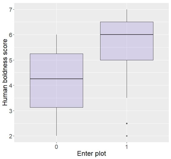 Likelihood of entering the plot according to boldness towards humans (higher score = higher boldness) in the Thai sample.