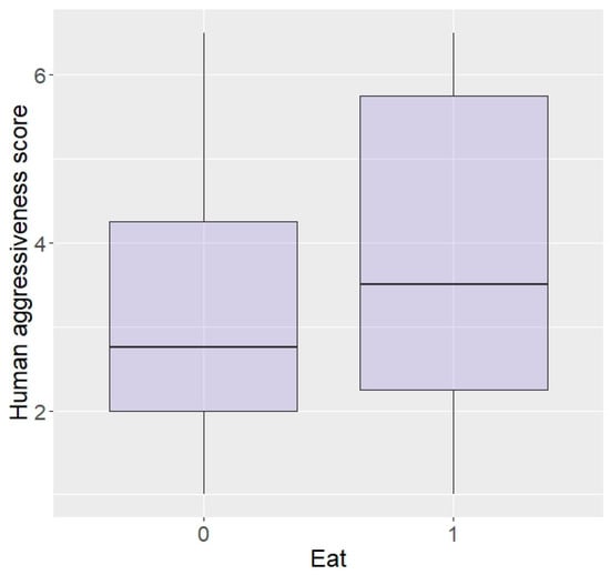 Likelihood of eating the food according to aggressiveness towards humans (higher score = higher aggressiveness) in the Zambian sample.