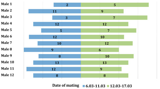 Seremak, B.; Pilarczyk, B.; Wojciechowska, A.; Tomza-Marciniak, A. Selected Aspects of Reproductive Behavior of American Mink (Neovison vison) under Artificial Conditions. Animals 2023, 13, 3346. https://doi.org/10.3390/ani13213346