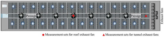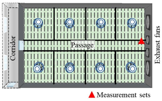 Schematic layout of the selected growing–finishing pig building for measurement.