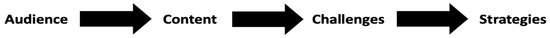 25], the framework consists of four parts: audience, content, challenges, and strategies (see