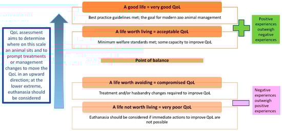 - Green, T.C.; Mellor, D.J. Extending ideas about animal welfare assessment to include ‘quality of life’ and related concepts. N. Z. Vet. J. 2011, 59, 263–271. [Google Scholar] [CrossRef]