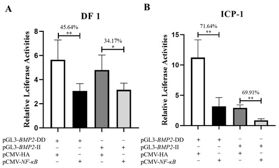 3.4. Transcription Factor NF-κB Regulates the Expression of BMP2 Gene via the 12-bp InDel Variation
