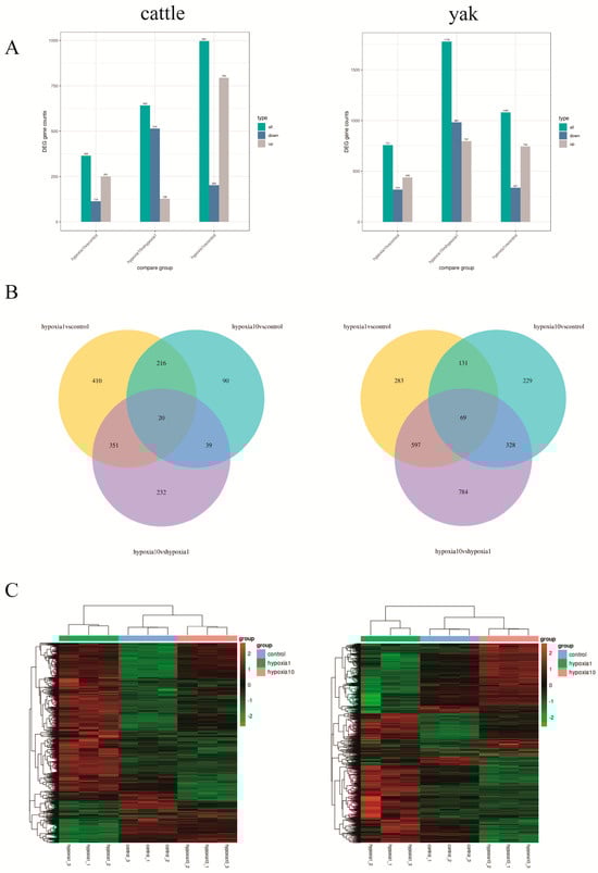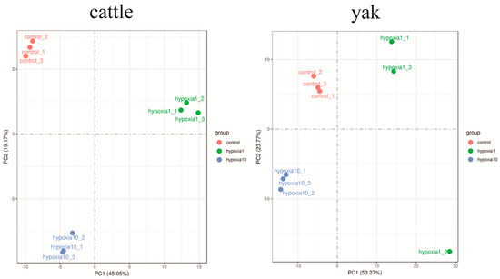 Chicago/Turabian StyleZhang, Yiyang, Manlin Zhou, Yuxin Liang, Rui Li, Lan Zhang, Shuwu Chen, Kun Yang, Haie Ding, Xiao Tan, Qian Zhang, and et al. 2023. "Study of Transcriptomic Analysis of Yak (Bos grunniens) and Cattle (Bos taurus) Pulmonary Artery Smooth Muscle Cells under Oxygen Concentration Gradients and Differences in Their Lung Histology and Expression of Pyruvate Dehydrogenase Kinase 1-Related Factors" Animals 13, no. 22: 3450. https://doi.org/10.3390/ani13223450