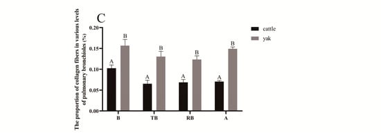 - Li, J.; Meng, X.; Wang, L.; Yu, Y.; Yu, H.; Wei, Q. Changes in the expression levels of elastic fibres in yak lungs at different growth stages. BMC Dev. Biol. 2021, 21, 9. [Google Scholar] [CrossRef]