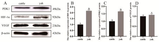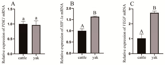 3.10. PDK1 and Its Related Factors’ mRNA Expression in Adult Cattle and Yak Lungs