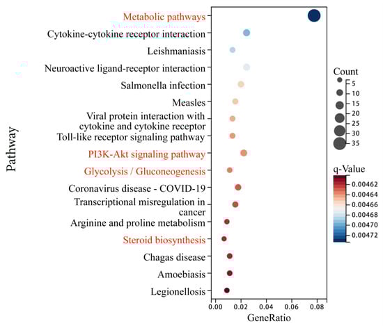 - Love, M.I.; Huber, W.; Anders, S. Moderated estimation of fold change and dispersion for RNA-seq data with DESeq2. Genome Biol. 2014, 15, 550. [Google Scholar] [CrossRef] [PubMed]
