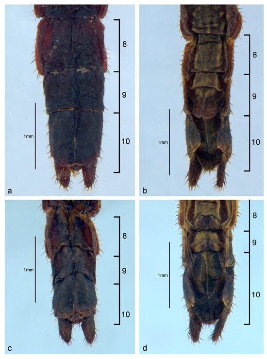 - Benítez, H.A.; Sanzana, M.-J.; Jerez, V.; Parra, L.E.; Hernandez, C.E.; Canales-Aguirre, C.B. Sexual Shape and Size Dimorphism in Carabid Beetles of the Genus Ceroglossus: Is Geometric Body Size Similar between Sexes Due to Sex Ratio? Zool. Sci. 2013, 30, 289–295. [Google Scholar] [CrossRef]