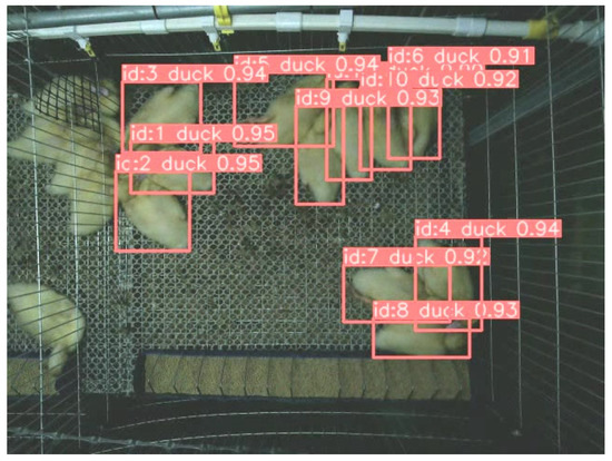 The MOT model developed in this study for group-housed ducks consisted of two stages: object detection and tracking. The improved YOLOv8x model served as the target classification detector, enabling the extraction of individual ducks from images, and Bot-SORT [26] was employed as the tracking tool to monitor the IDs and positions of ducks at different time intervals.