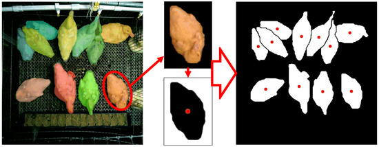where Sx and Sy respectively represent the x- and y-axis coordinates of the meat duck relative to the image, respectively; while Zx and Zy denote the left-bottom x- and y-axis coordinates of the meat duck mask’s regression box, respectively.