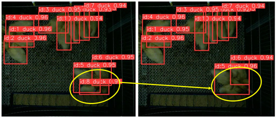 Figure 6 illustrates examples of tracking errors across consecutive frames. These instances of tracking errors emphasize the importance of enhancing the precision of the detector to better handle scenarios where ducks are closely grouped, further improving tracking accuracy.