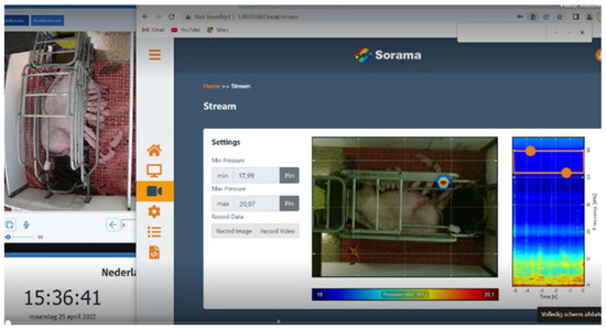 The screen capture that was used for the analysis of behaviour and sound in the farrowing pen.