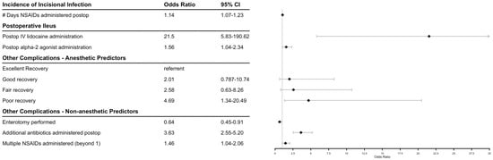 APA StyleRockow, M., Griffenhagen, G., Landolt, G., Hendrickson, D., & Pezzanite, L. (2023). The Effects of Antimicrobial Protocols and Other Perioperative Factors on Postoperative Complications in Horses Undergoing Celiotomy: A Retrospective Analysis, 2008–2021. Animals, 13(22), 3573. https://doi.org/10.3390/ani13223573