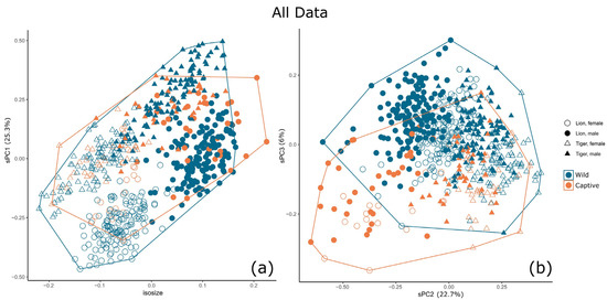 APA StyleCooper, D. M., Yamaguchi, N., Macdonald, D. W., Patterson, B. D., Salkina, G. P., Yudin, V. G., Dugmore, A. J., & Kitchener, A. C. (2023). Getting to the Meat of It: The Effects of a Captive Diet upon the Skull Morphology of the Lion and Tiger. Animals, 13(23), 3616. https://doi.org/10.3390/ani13233616