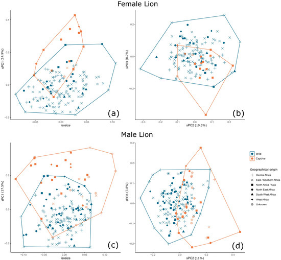 - Saragusty, J.; Shavit-Meyrav, A.; Yamaguchi, N.; Nadler, R.; Bdolah-Abram, T.; Gibeon, L.; Hildebrandt, T.B.; Shamir, M.H. Comparative Skull Analysis Suggests Species-Specific Captivity-Related Malformation in Lions (Panthera leo). PLoS ONE 2014, 9, e94527. [Google Scholar] [CrossRef]