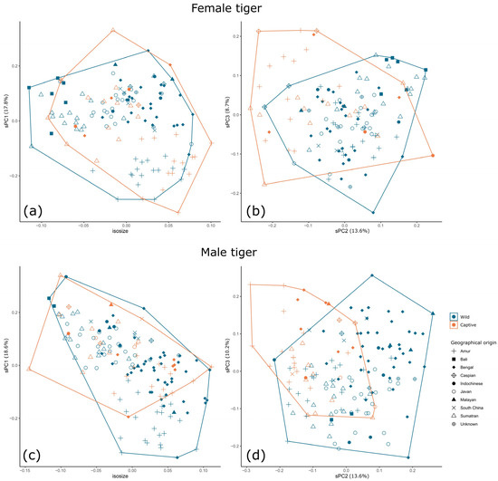 - Cooper, D.M.; Yamaguchi, N.; Macdonald, D.W.; Nanova, O.G.; Yudin, V.G.; Dugmore, A.J.; Kitchener, A.C. Phenotypic Plasticity Determines Differences between the Skulls of Tigers from Mainland Asia. R. Soc. Open. Sci. 2022, 9, 220697. [Google Scholar] [CrossRef]