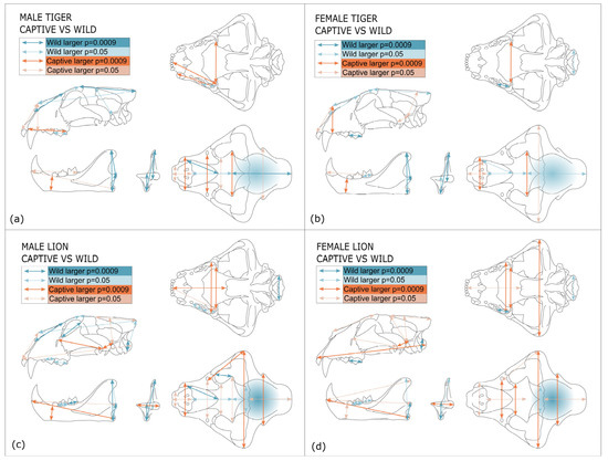 Cooper DM, Yamaguchi N, Macdonald DW, Patterson BD, Salkina GP, Yudin VG, Dugmore AJ, Kitchener AC. Getting to the Meat of It: The Effects of a Captive Diet upon the Skull Morphology of the Lion and Tiger. Animals. 2023; 13(23):3616. https://doi.org/10.3390/ani13233616