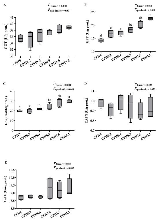 17], the hepatopancreatic calpain (CAPN) activity was assessed. The hepatopancreatic cathepsin L (catL) activity was evaluated in accordance with a previous study [