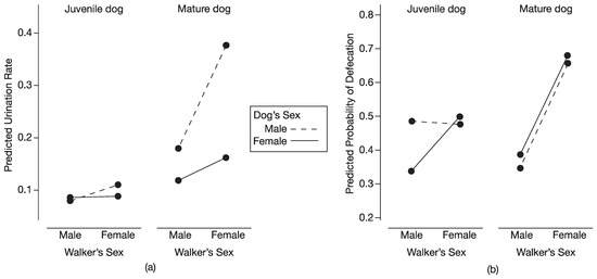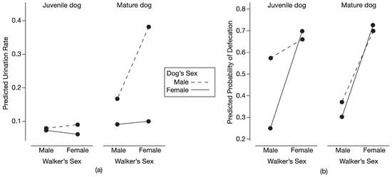 | Dog’s Sex | Walker’s Sex | Dog’s Maturity 1 | Urination Rate 2 | % Walks with Defecation |