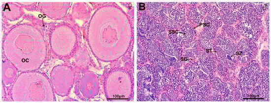 Huang, L.; Ye, H.; Yue, H.; Leng, X.; Ruan, R.; Du, H.; Li, C.; Wu, J. Comparative Transcriptome Analysis Reveals Sexually Dimorphic Gene Expression in the Gonads of Brachymystax tsinlingensis Li. Animals 2023, 13, 3690. https://doi.org/10.3390/ani13233690