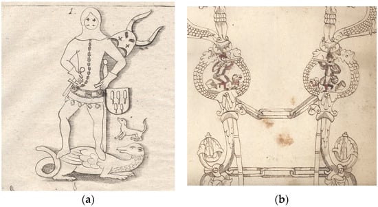(a) Engraving of an epitaph for Albrecht I von Limpurg (+1374) in the Schenkenkapelle of Comburg Abbey in Schwäbisch Hall (from: Heinrich Prescher: Geschichte und Beschreibung der […] Reichsgrafschaft Limpurg, Volume 1, 1789); (b) Drawing of a horse bridle (detail), c. 1600 (Gaildorf town archive, inv. no. OBA01/978).