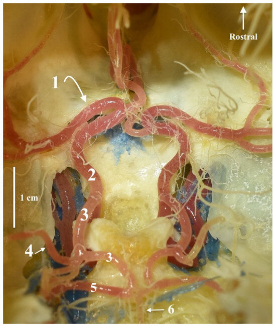 - Zdun, M.; Ruszkowski, J.J.; Butkiewicz, A.F.; Gogulski, M. Arterial Blood Supply to the Cerebral Arterial Circle in the Selected Species of Carnivora Order from Poland. Animals 2023, 13, 3144. [Google Scholar] [CrossRef]