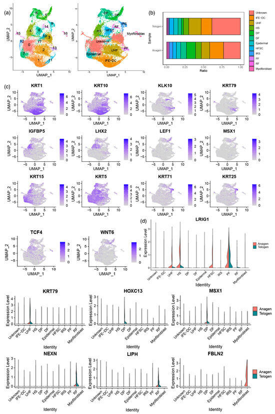 - Ge, W.; Zhang, W.; Zhang, Y.; Zheng, Y.; Li, F.; Wang, S.; Liu, J.; Tan, S.; Yan, Z.; Wang, L.; et al. A single-cell transcriptome atlas of cashmere goat hair follicle morphogenesis. Genom. Proteom. Bioinform. 2021, 19, 437–451. [Google Scholar] [CrossRef] [PubMed]
